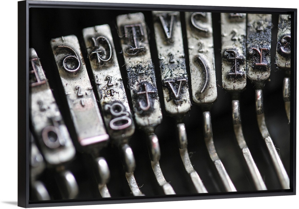 <p>Detail of the gavel with inked letters of an old mechanical typewriter.</p>
