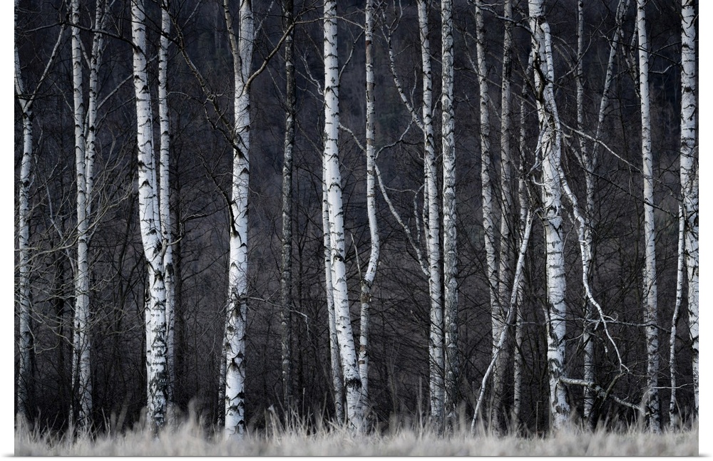 <p>Detail shot of birch trees in forest, Vysoka Lipa, Jetrichovice, Okres Decin, Ustecky kraj Province, Bohemian Switzerland National Park, North-Western Czech Republic, Czech Republic</p>