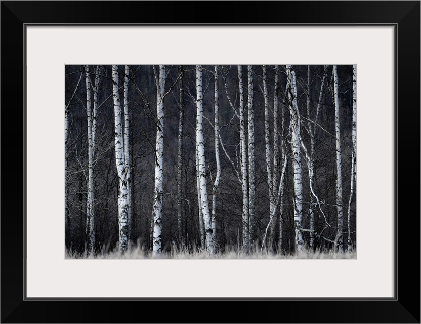 <p>Detail shot of birch trees in forest, Vysoka Lipa, Jetrichovice, Okres Decin, Ustecky kraj Province, Bohemian Switzerland National Park, North-Western Czech Republic, Czech Republic</p>