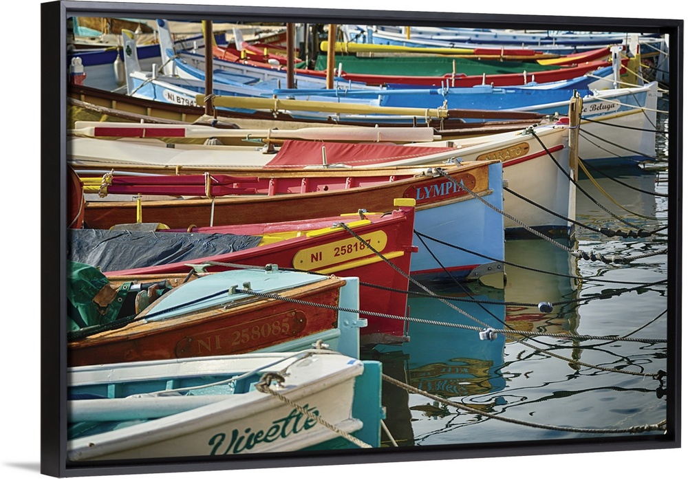 <p>Detail view of Small Colorful Traditional Fishing Boats, Port Lympia, Nice, Cote d'Azur, France</p>