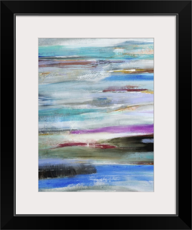 <p>Contemporary abstract painting using vibrant colors in horizontal lines.</p>