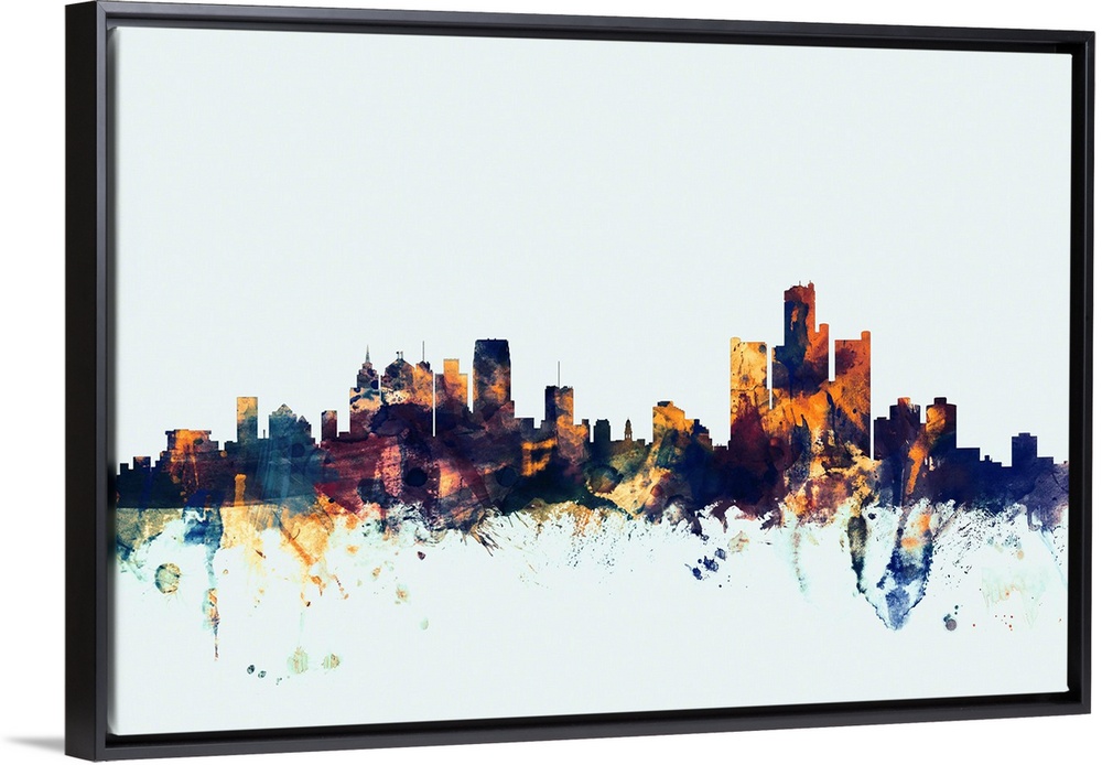<p>Watercolor art print of the skyline of Detroit, Michigan, United States</p>