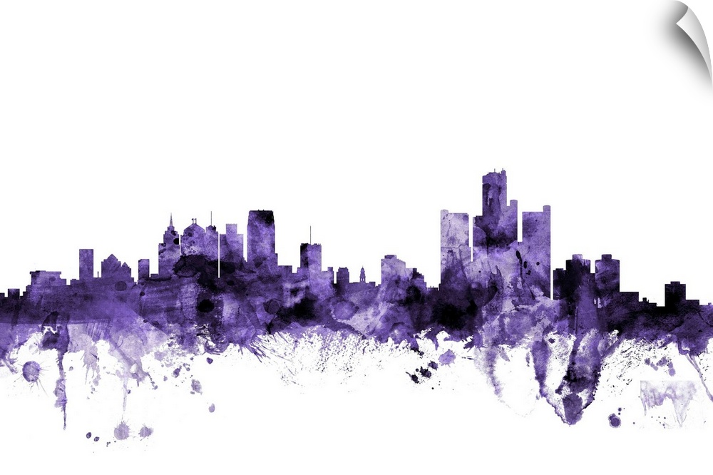 <p>Watercolor art print of the skyline of Detroit, Michigan, United States</p>