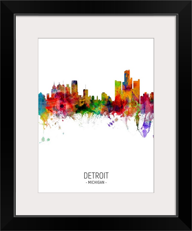 <p>Watercolor art print of the skyline of Detroit, Michigan, United States</p>