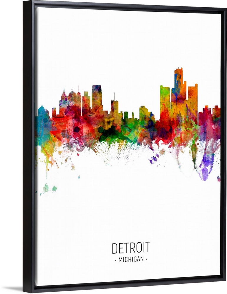 <p>Watercolor art print of the skyline of Detroit, Michigan, United States</p>