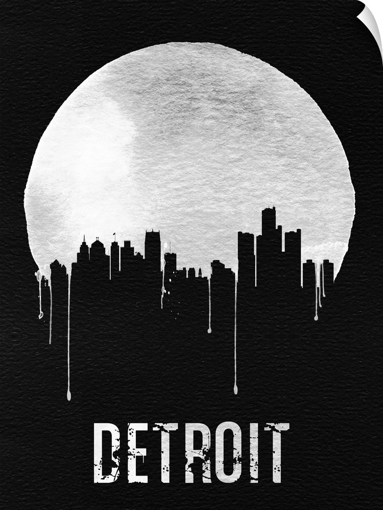<p>Contemporary watercolor artwork of the Detroit city skyline, in silhouette.</p>