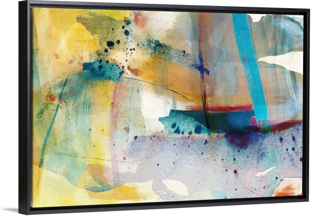 <p>Splashes and splatters of paint make up this abstract piece of artwork.</p>