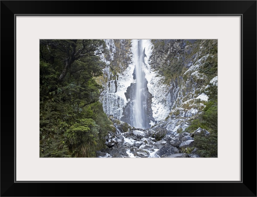<p>Devils Punchbowl Falls, Frozen in Winter, Arthur's Pass, Canterbury, South Island, New Zealand</p>