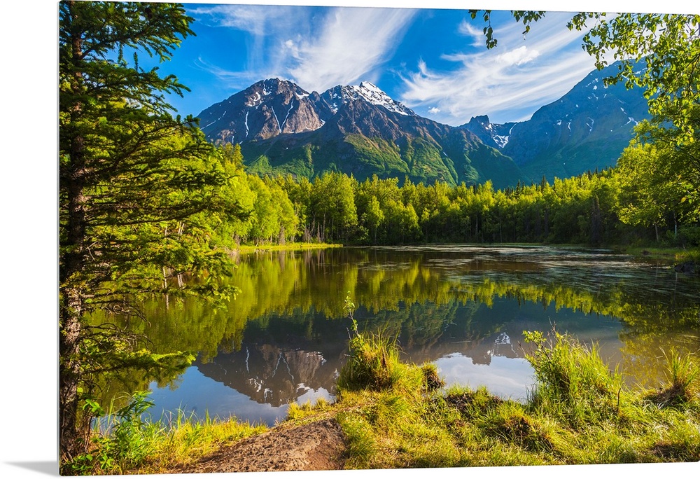 <p>Dew Pond in the Chugach State Park in Eagle River on a sunny day, South-central Alaska, Alaska, United States of America.</p>