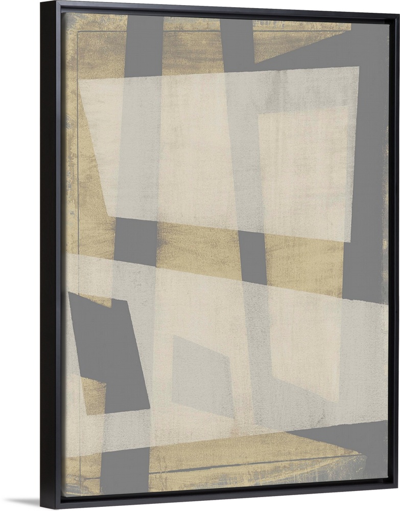<p>This contemporary artwork displays neutral tones in angular geometric shapes with varying opacity.</p>
