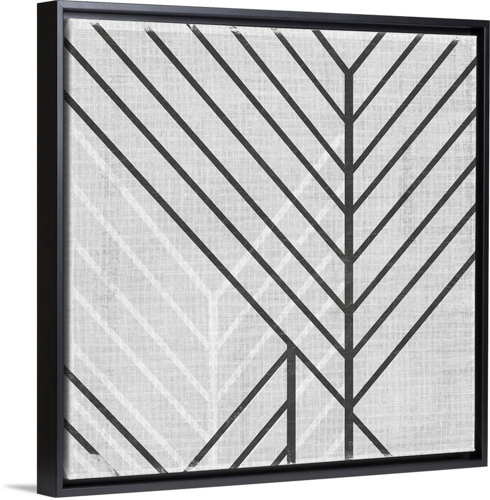 <p>Square abstract art with lines running diagonally across the canvas in gray and white.</p>