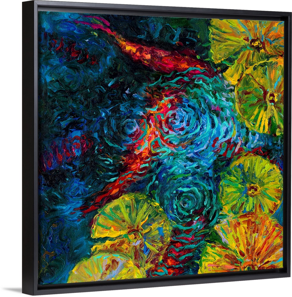 <p>Brightly colored contemporary artwork of a fish in water.</p>