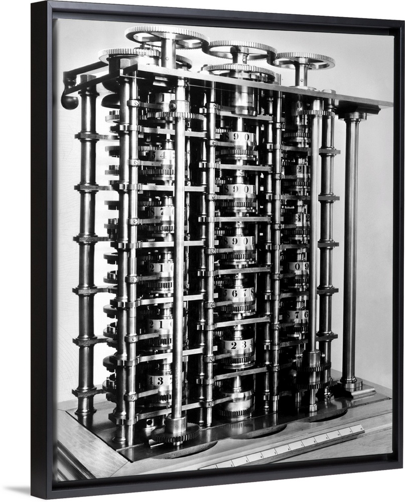 <p>Part of a differential calculating machine on which Charles Babbage, English mathematician, worked for 37 years, only to find it rejected for a patent by the government. Undated photograph.</p>