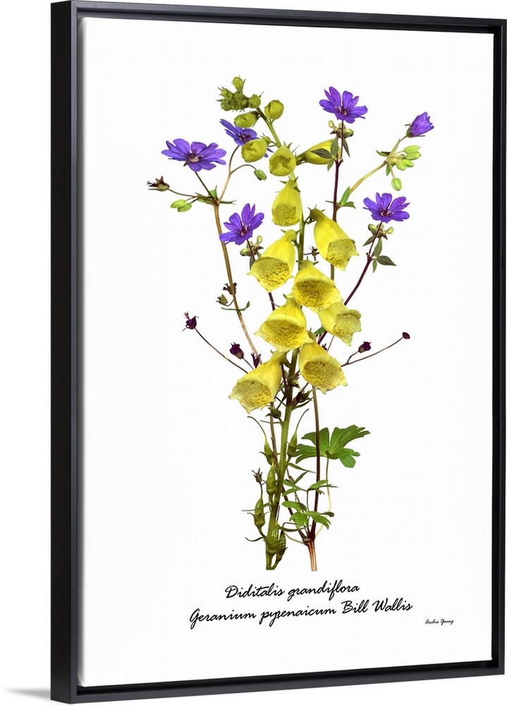 <p>Illustration of Digitalis grandiflora and Geranium pyrenacium 'Bill Wallis' in flower.</p>