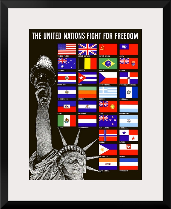 <p>Digitally restored vector war propaganda poster. This artwork features the Statue Of Liberty and the flags of the United Nations. It declares, The United Nations Fight For Freedom.</p>