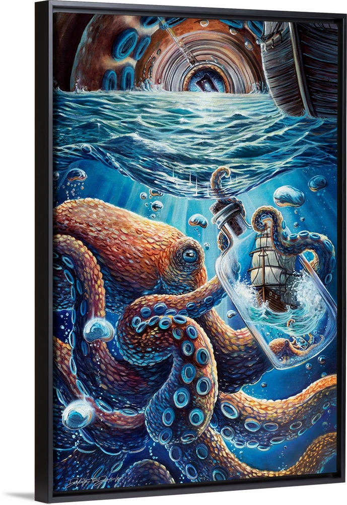 Art Dakota Daetwiler Fantasy Wildlife Painting Ship Wildlife Octopus and Squid