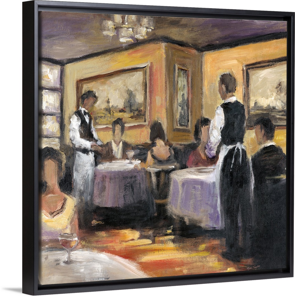 <p>Contemporary painting of couples sitting in an elegant restaurant.</p>