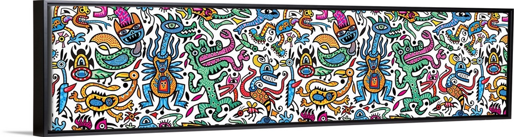 <p>Contemporary mural artwork of monsters and other abstract figures in a confusion of colors and patterns.</p>