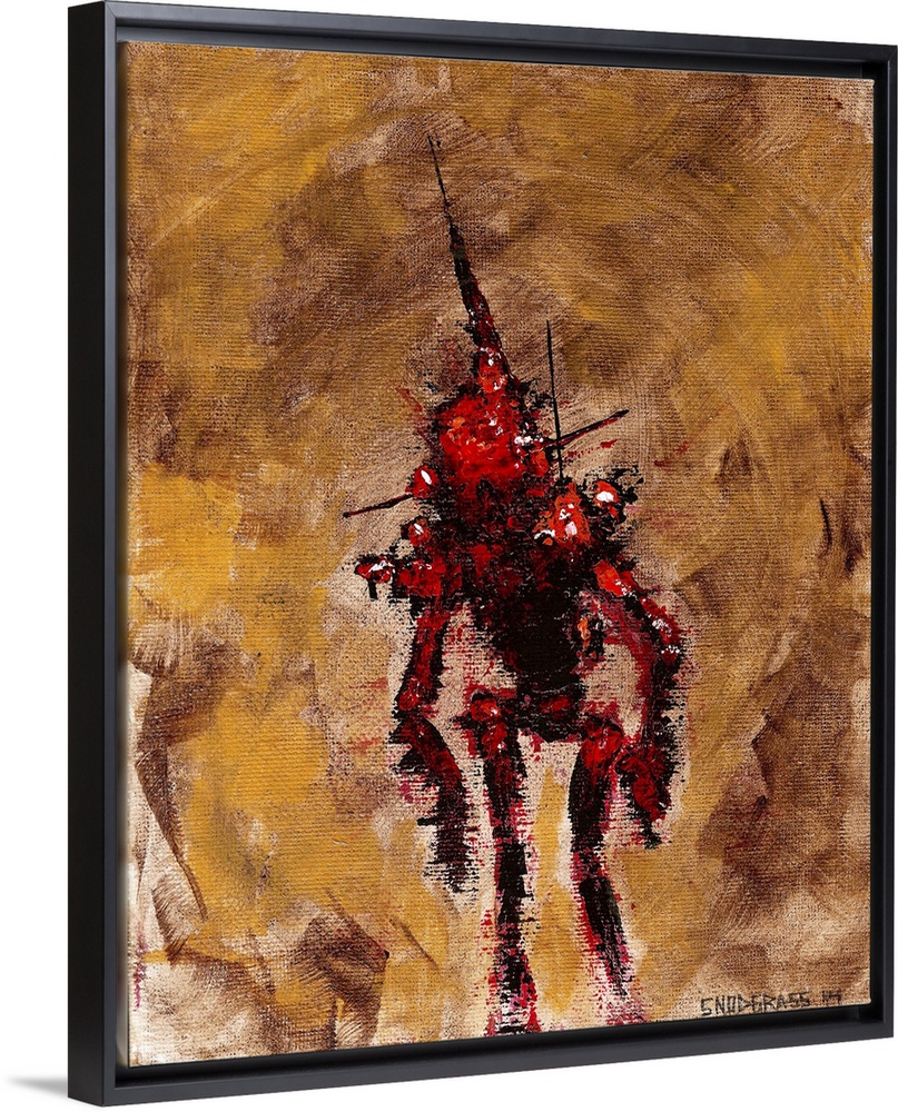 <p>Illustration of a worn down red robot on brown.</p>
