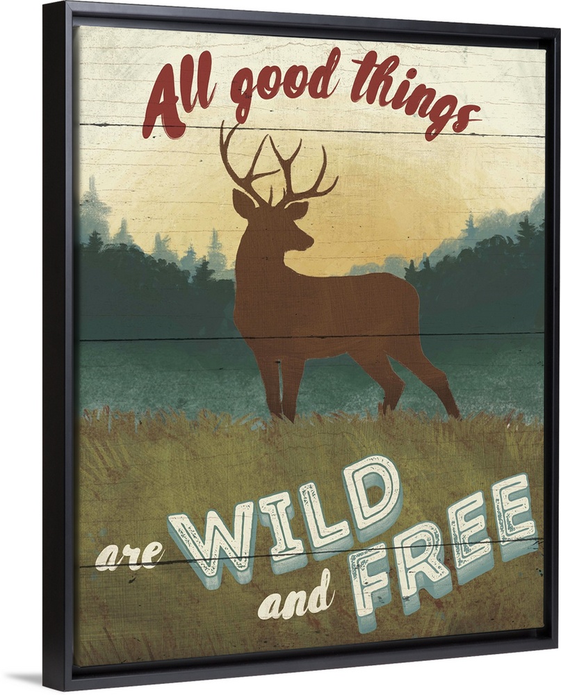 <p>"All good things are wild and free" over a minimalist image of a deer in the wilderness.</p>