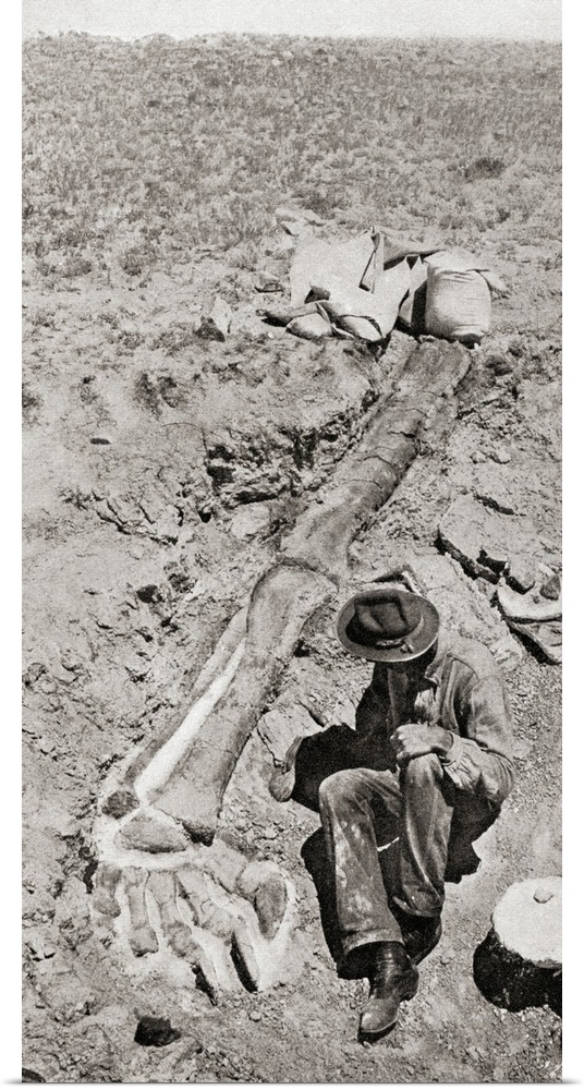 <p>First Discovery Of The Long Hind Leg Of The Dinosaur Diplodocus, By Henry Fairfield Osborn In 1898, At Bone Cabin Quarry, Near Medecine Bow, Wyoming, America. From The Century Illustrated Monthly Magazine, May To October 1904.</p>