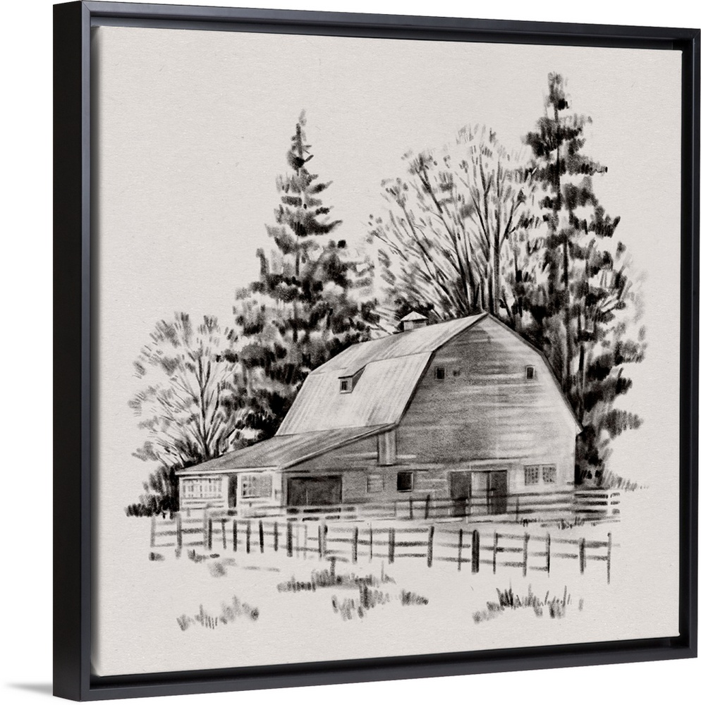 Art Rustic Emma Caroline Landscapes Long December Decorative Art Drawing Illustrations Landscapes Barn