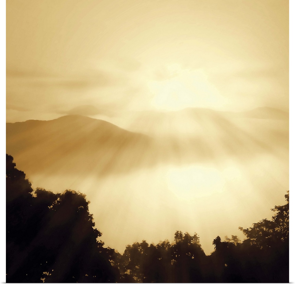 Alan Hausenflock Landscapes Mist and Fog Mountains Sunrise Photography Yellow Wall Art
