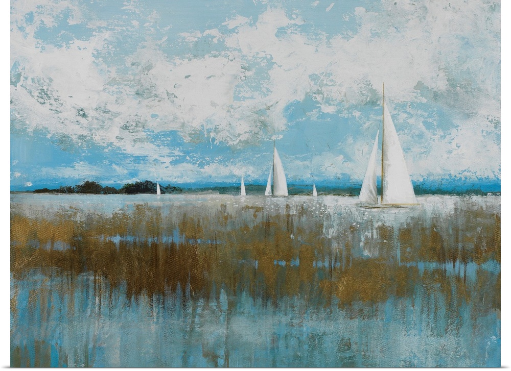 Art Coastal Blue Wall Art Contemporary Art Beaches Seascapes Painting Transportation Boat Sailboat