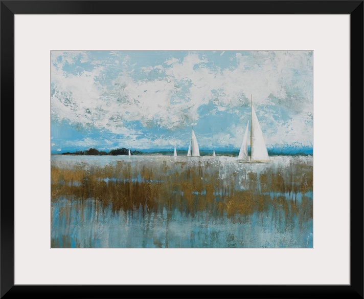 Art Coastal Blue Wall Art Contemporary Art Beaches Seascapes Painting Transportation Boat Sailboat