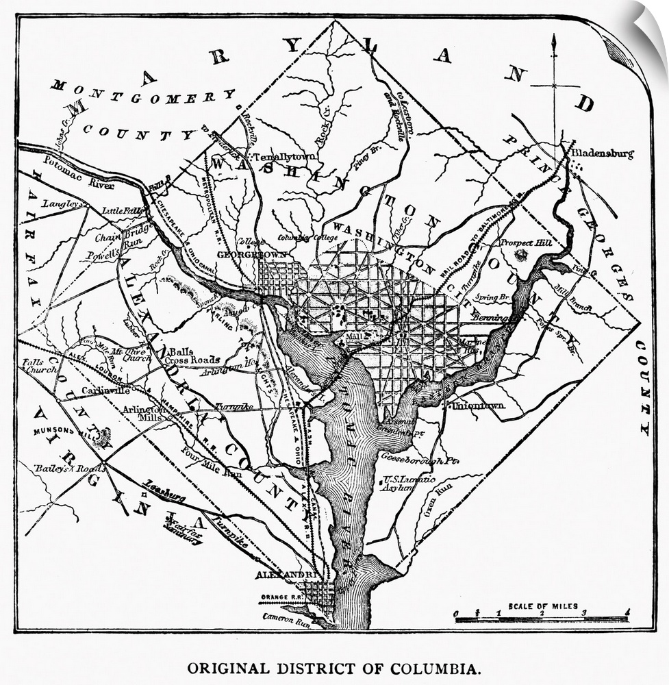 <p>District Of Columbia, 1801. Plan Of the District Of Columbia, Including the Cities Of Washington, Georgetown And Alexandria, According To the Organic Act Of 1801. Wood Engraving, 1886.</p>