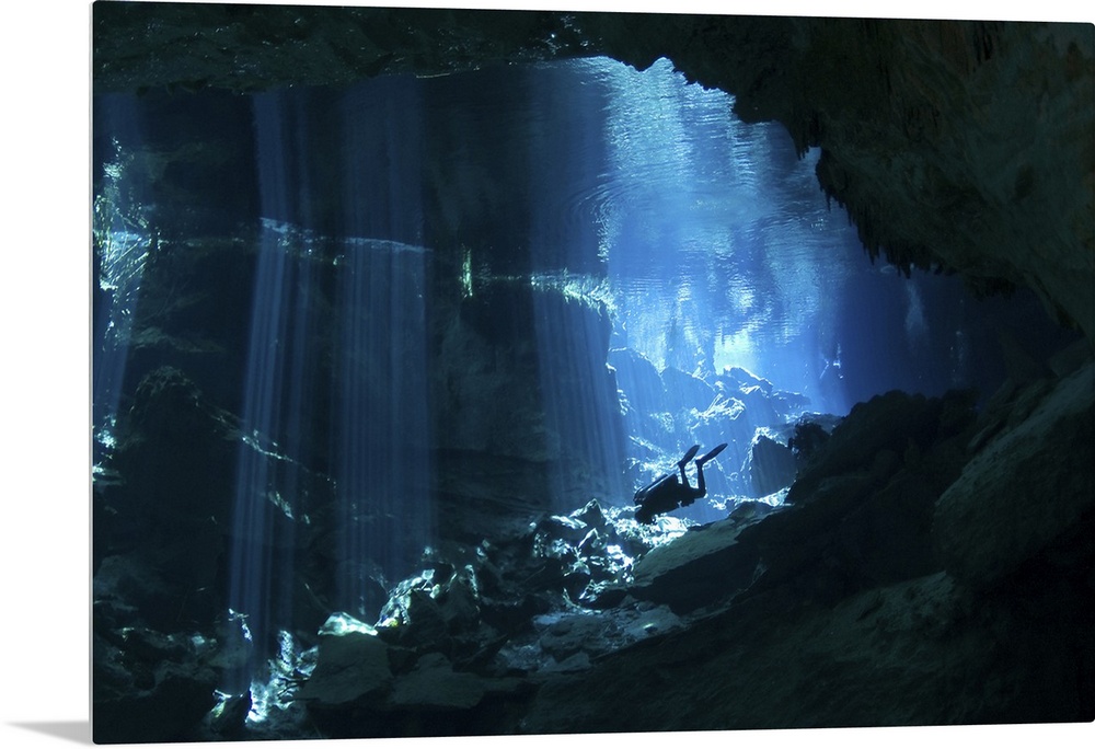 <p>Diver enters the cavern system at Chac Mool cenote in the Riviera Maya area of Mexico's Yucatan Peninsula.</p>