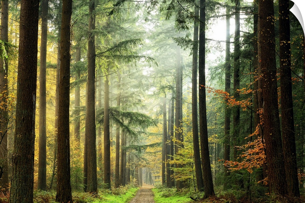 <p>Photograph looking down a path through a fogy and mist shrouded dense forest.</p>