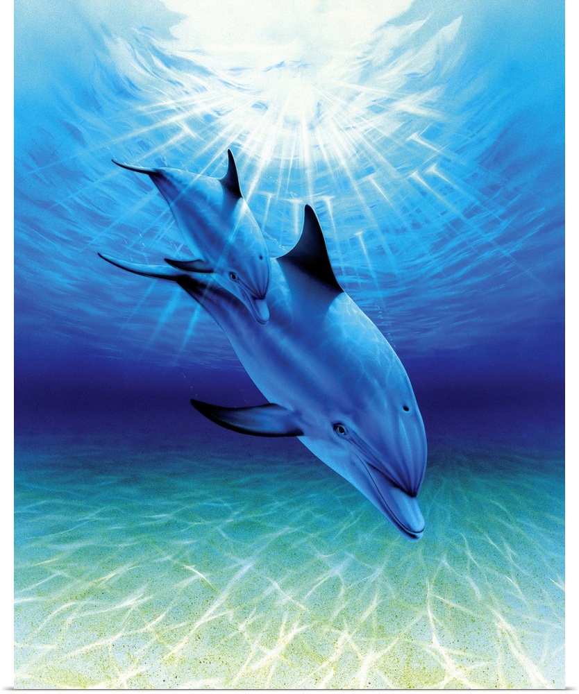 Art Blue Wall Art Robin Koni Painting Wildlife Marine Life Dolphin