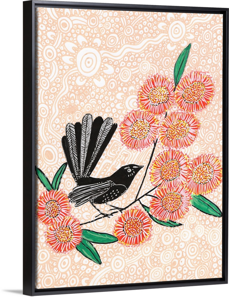 <p>"Djidi Djidi" is an Australian and New Guinean native bird, scientifically known as Rhipidura leucophrys, commonly referred to as a Willie Wagtail (or Willy Wagtail) in English. Its Noongar name is derived from its distinctive call, while its English name reflects its behavior of rapidly wagging its tail while hunting for insects. This naming pattern is a common practice, with the Noongar name often rooted in vocalizations, and the English name highlighting a visual characteristic or behavior.</p>