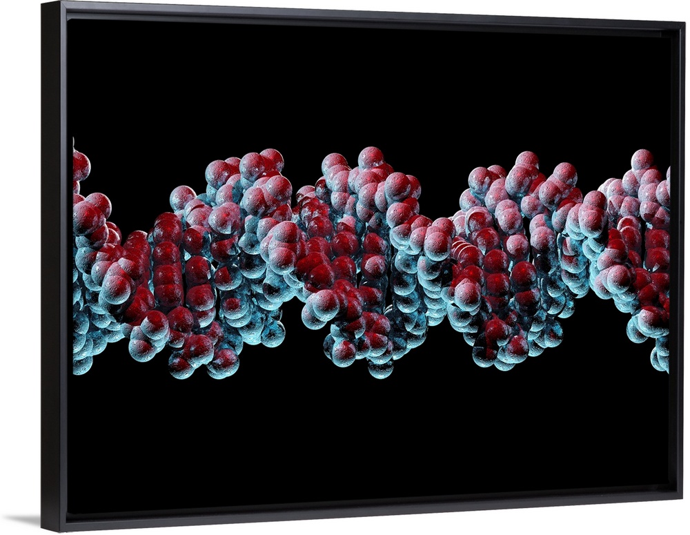 <p>DNA molecule. Computer artwork of a molecule of DNA (deoxyribonucleic acid). DNA is composed of two strands twisted into a double helix. Each strand consists of an outer sugar-phosphate backbone with cross-linking nucleotide bases (vertical lines). There are four bases: adenine, cytosine, guanine and thymine. DNA contains sections called genes that encode the body's genetic information.</p>