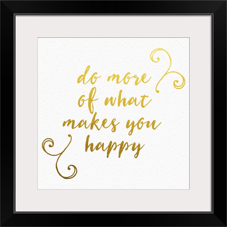 <p>"Do more of what makes you happy" handwritten in gold with small flourishes.</p>