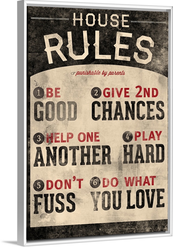 <p>An inspirational poster titled "House Rules". There is a grunge faded look to the print.</p>