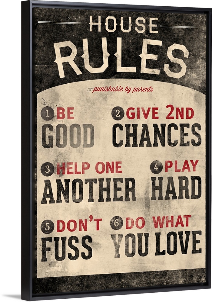 <p>An inspirational poster titled "House Rules". There is a grunge faded look to the print.</p>
