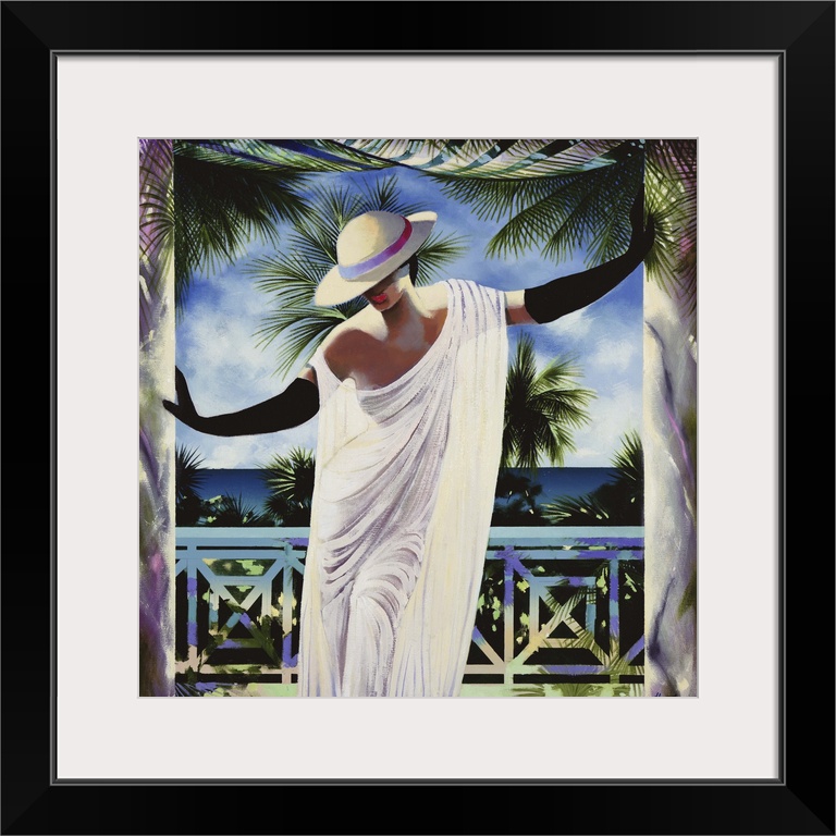 <p>Contemporary painting of a woman wearing a hat and robe.</p>
