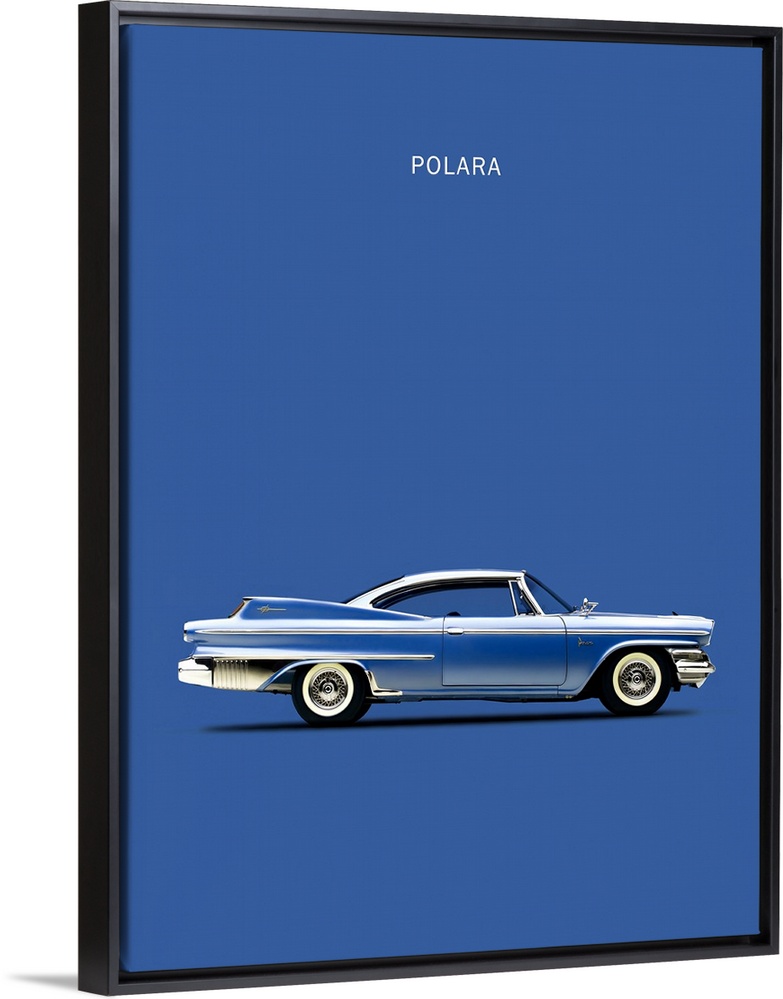 <p>Photograph of a blue Dodge Polara D500 1960 printed on a blue background</p>