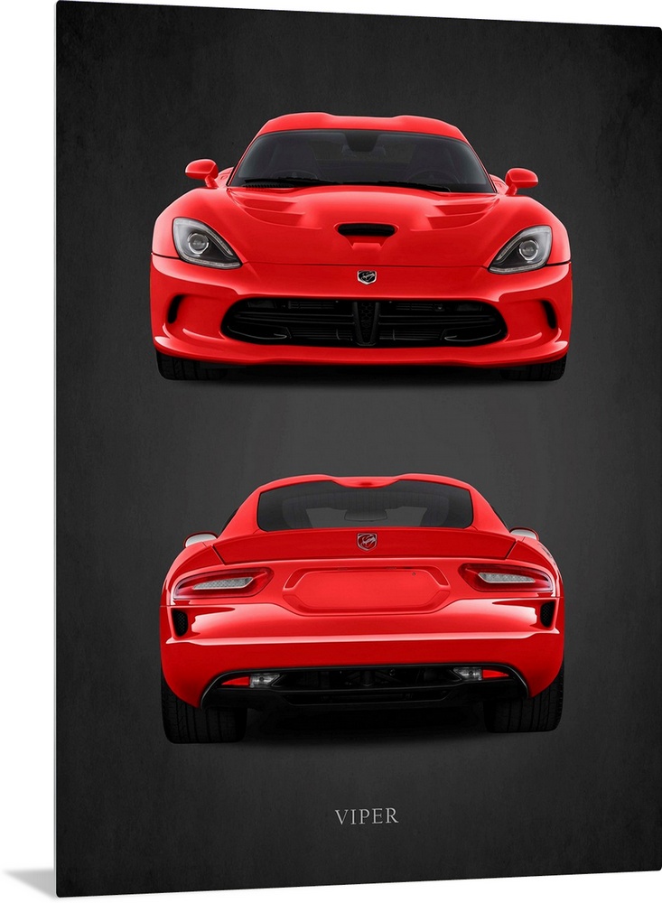 <p>Photograph of a red Dodge Viper printed on a black background with a dark vignette.</p>