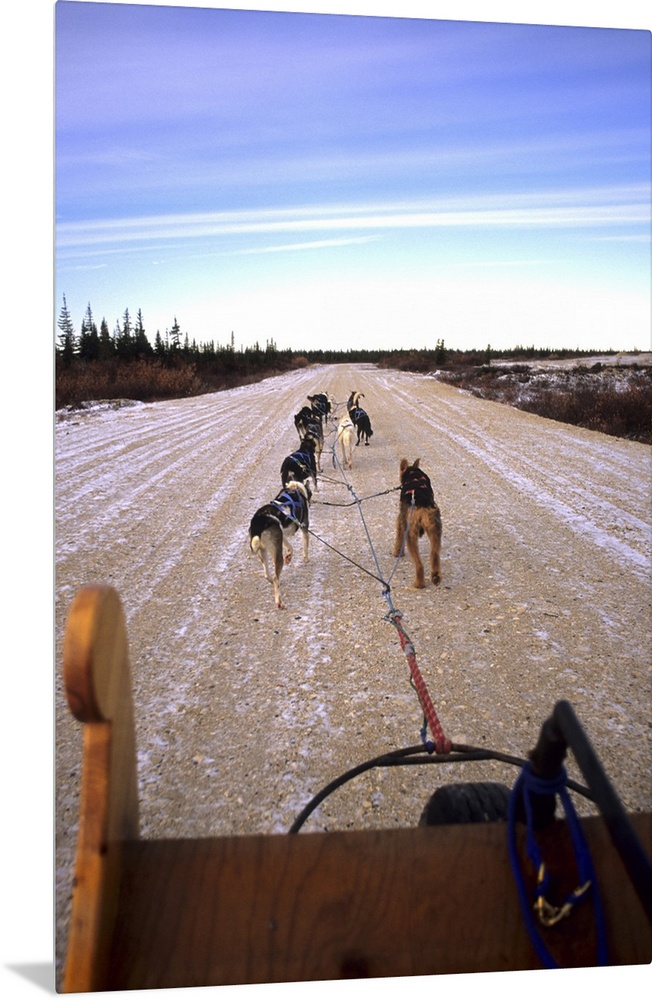 <p>Famous Dog sledding team tundra near Churchill Northern Studies Centre Churchill Manitoba Canada.</p>