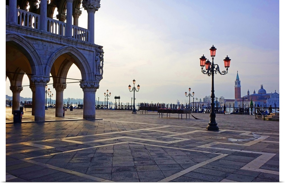 <p>Doge's Palace and Piazzetta against San Giorgio Maggiore in early morning light, Venice, Veneto, Italy</p>