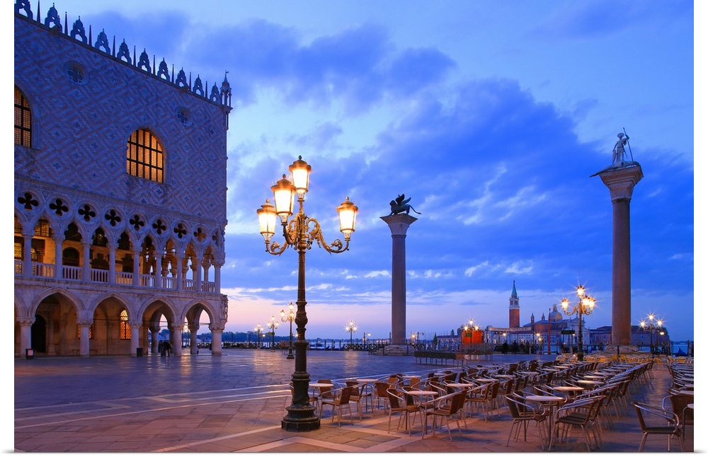 <p>Doge's Palace and Piazzetta against San Giorgio Maggiore in the early morning light, Venice, Veneto, Italy</p>