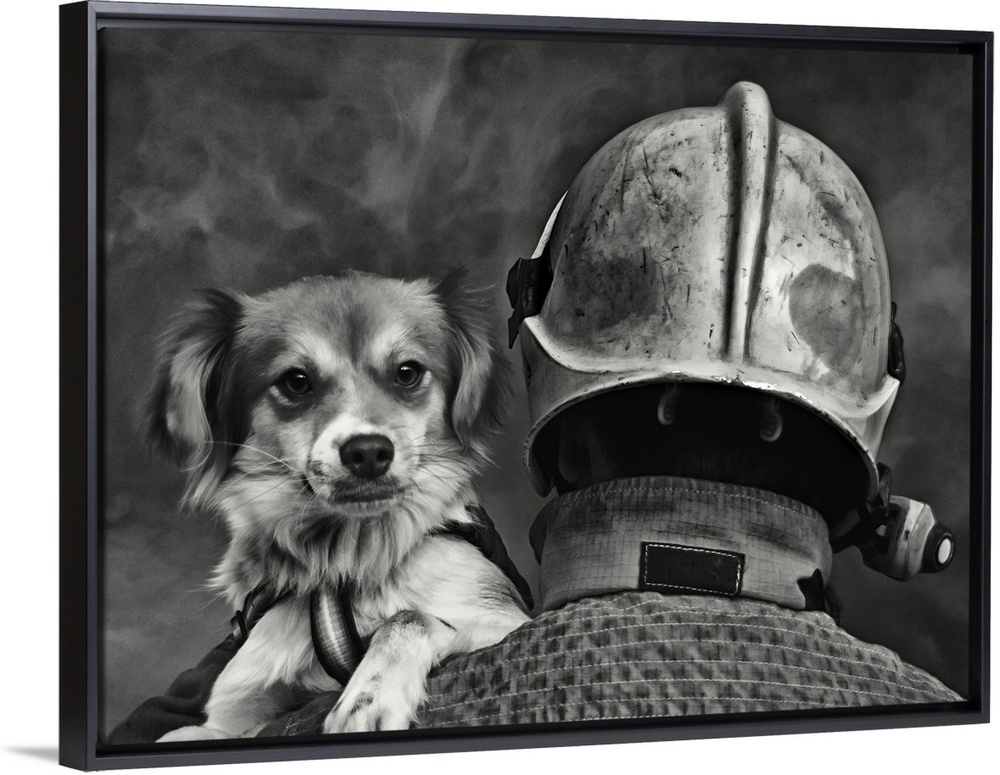 <p>A firefighter carries a dog rescued from a burning building.</p>