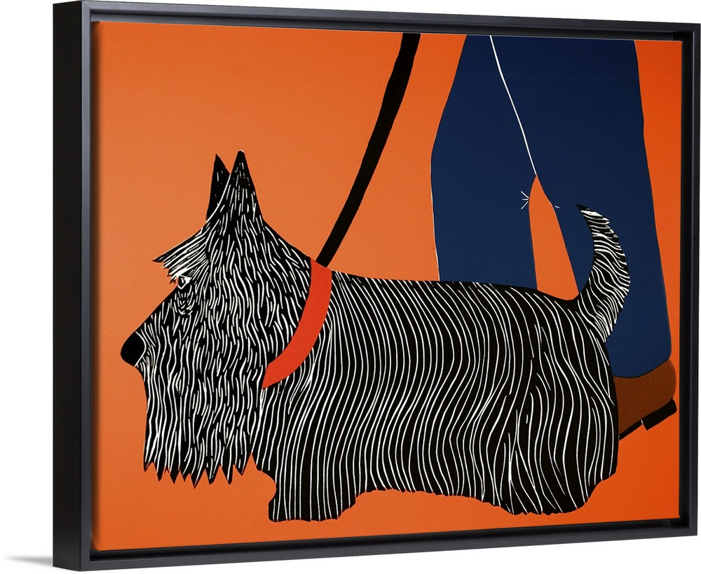 <p>Illustration of a Scottish terrier heeling next to its owner while on a walk.</p>