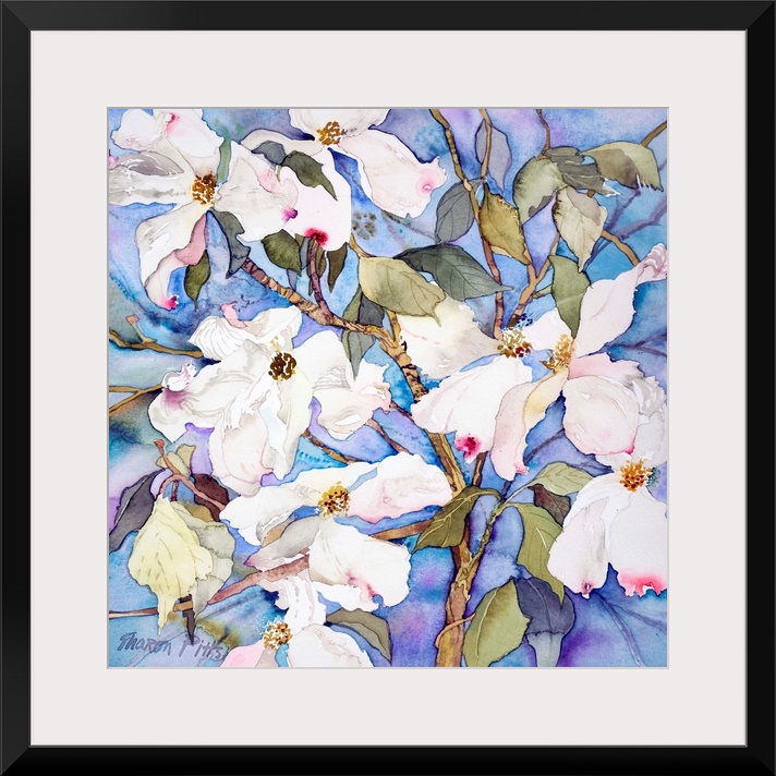 Art Blue Wall Art Contemporary Art Plants and Flowers Florals Dogwood Painting Sharon Pitts Watercolor