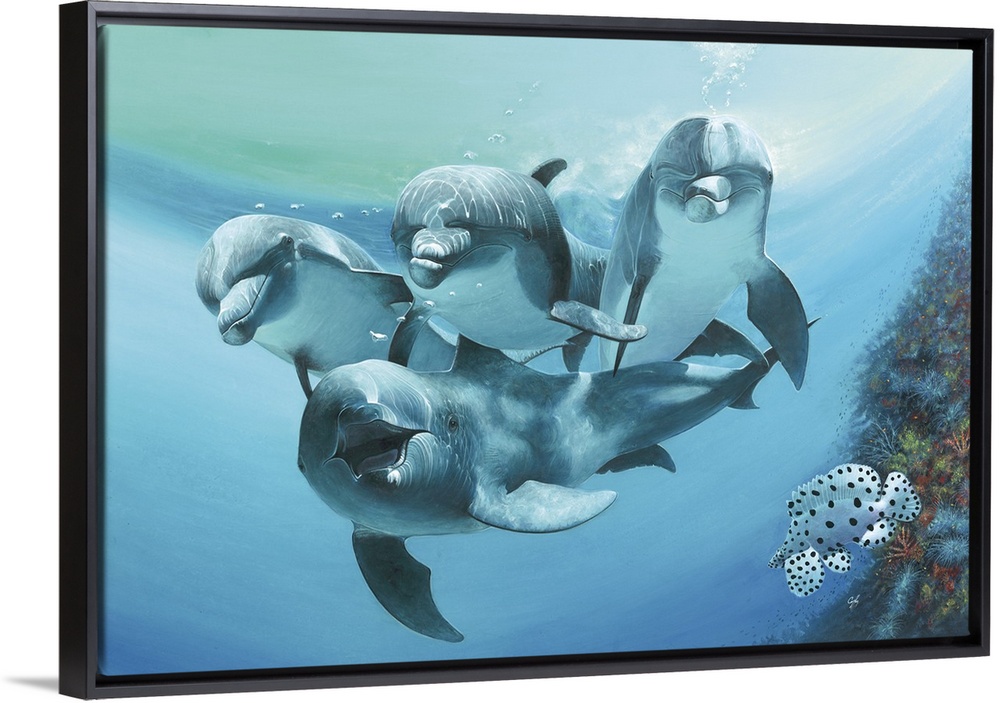 <p>Contemporary painting of a group of dolphins swimming.</p>