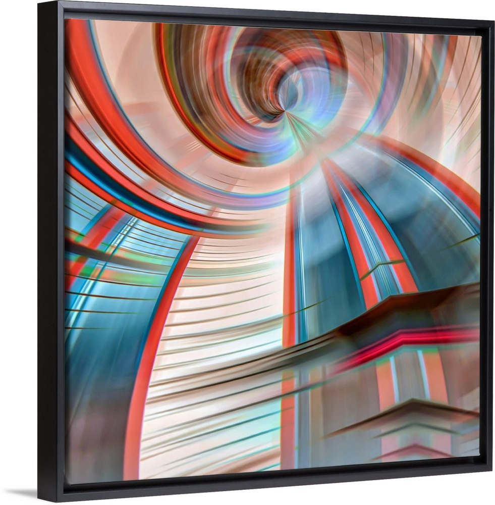 <p>Abstract photography - the original photo is of a very old building with colourful windows and white siding. The image was altered in post-processing to shape it into a sort of bright dome, like what you would see in a church.</p>