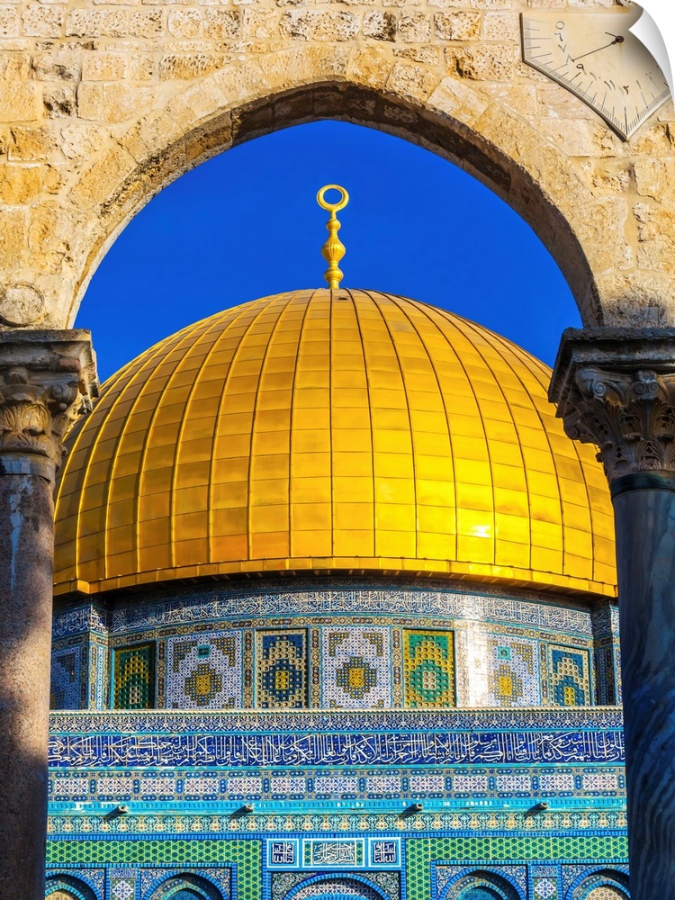 <p>Dome of the Rock Islamic Mosque Temple Mount Jerusalem Israel. Built in 691 One of most sacred spots in Islam where Prophet Mohamed ascended to heaven on an angel in his "night journey". The Dome covers the rock where Abraham was to sacrifice Issac.</p>